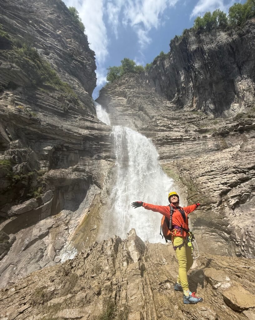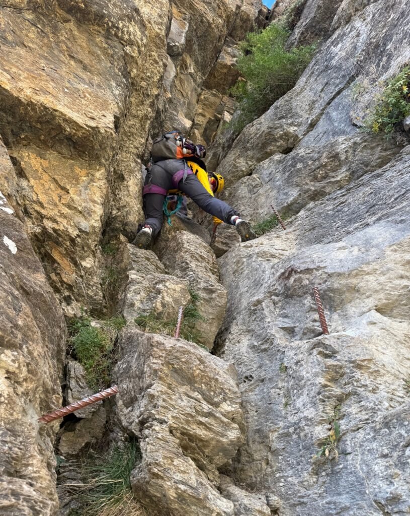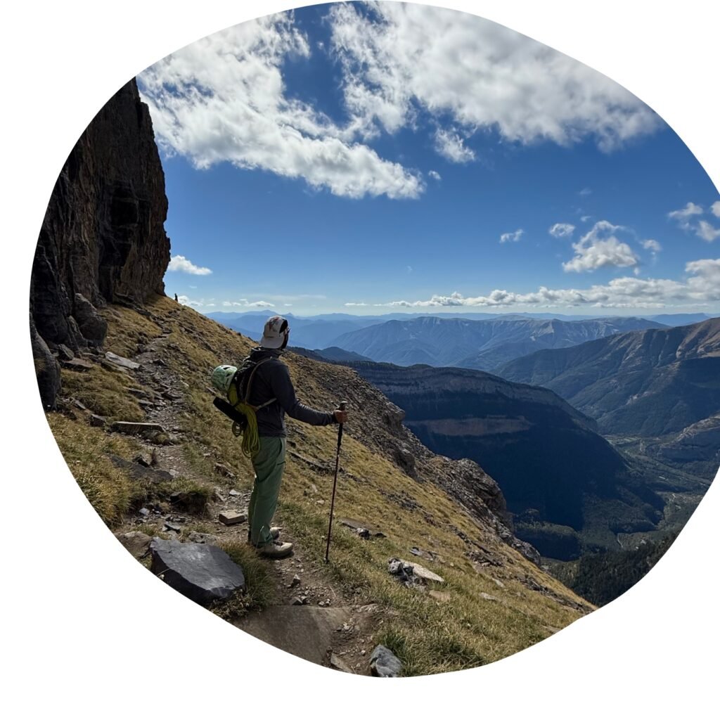 Una vez en la Faja de las Flores, el recorrido se vuelve más panorámico y aéreo, con vistas impresionantes del valle. Para cerrar la ruta, descendimos por las Clavijas de Cotatuero, poniendo el broche más aventurero a una excursión completa y muy variada. Es una ruta pensada para personas acostumbradas a la montaña y sin vértigo, pero a cambio ofrece una de las experiencias más completas y bonitas de Ordesa.